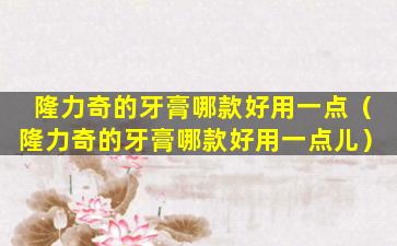 隆力奇的牙膏哪款好用一点(隆力奇的牙膏哪款好用一点儿)