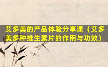 艾多美的产品体验分享课(艾多美多种维生素片的作用与功效)