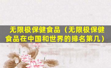 无限极保健食品(无限极保健食品在中国和世界的排名第几)