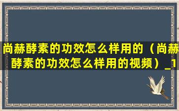 尚赫酵素的功效怎么样用的(尚赫酵素的功效怎么样用的视频)