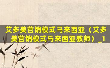 艾多美营销模式马来西亚(艾多美营销模式马来西亚教师)