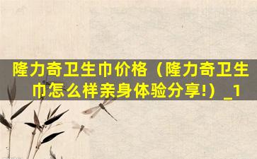 2、隆力奇卫生巾怎么样?亲身体验分享!