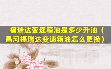 福瑞达变速箱油是多少升油(昌河福瑞达变速箱油怎么更换)