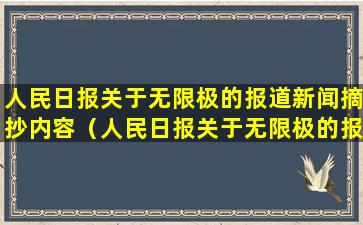 人民日报关于无限极的报道新闻摘抄内容(人民日报关于无限极的报道新闻摘抄内容有哪些)