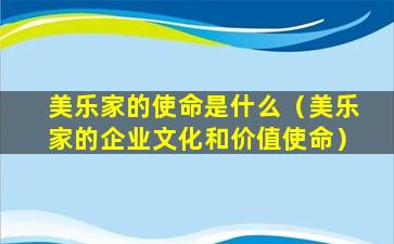 美乐家的使命是什么(美乐家的企业文化和价值使命)