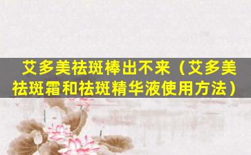 艾多美祛斑棒出不来(艾多美祛斑霜和祛斑精华液使用方法)