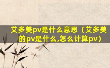 艾多美pv是什么意思(艾多美的pv是什么,怎么计算pv)