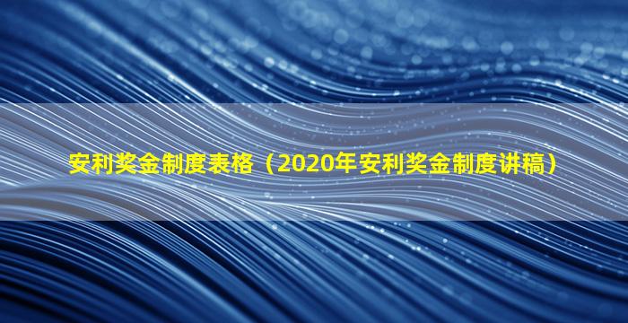 安利奖金制度表格(2020年安利奖金制度讲稿)