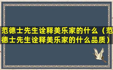 范德士先生诠释美乐家的什么(范德士先生诠释美乐家的什么品质)