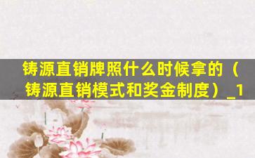 铸源直销牌照什么时候拿的(铸源直销模式和奖金制度)