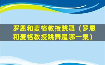 罗恩和麦格教授跳舞(罗恩和麦格教授跳舞是哪一集)