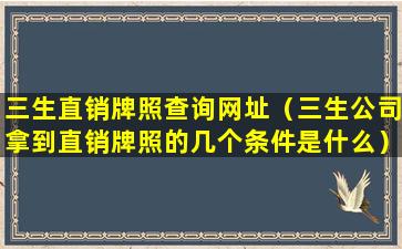 三生直销牌照查询网址(三生公司拿到直销牌照的几个条件是什么)