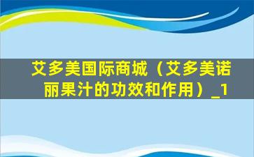 艾多美国际商城(艾多美诺丽果汁的功效和作用)