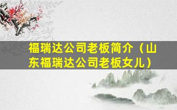 福瑞达公司老板简介(山东福瑞达公司老板女儿)