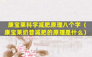 康宝莱科学减肥原理八个字(康宝莱奶昔减肥的原理是什么)