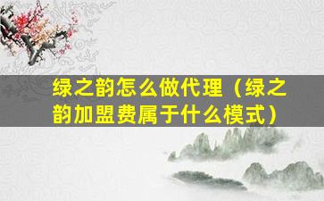 绿之韵怎么做代理(绿之韵加盟费属于什么模式)