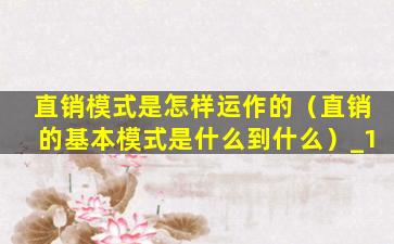 直销模式是怎样运作的(直销的基本模式是什么到什么)