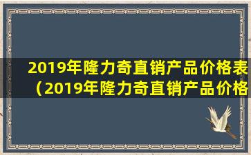隆力奇是一家著名的直销公司,长期致力于为消费者提供优质的产品和服务。以下是以图片形式展示的2019年隆力奇直销产品价格表: