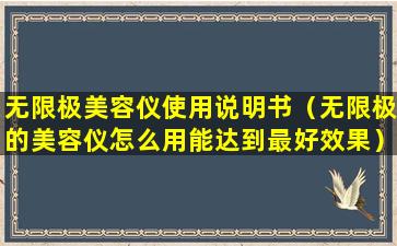 无限极美容仪使用说明书(无限极的美容仪怎么用能达到最好效果)