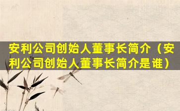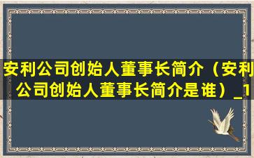 安利公司创始人董事长简介(安利公司创始人董事长简介是谁)