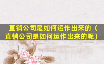 直销公司是如何运作出来的(直销公司是如何运作出来的呢)