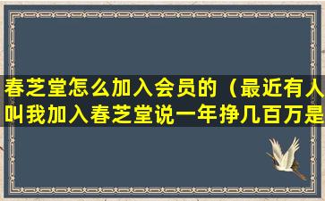 春芝堂怎么加入会员的(最近有人叫我加入春芝堂说一年挣几百万是真的吗)