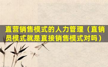 直营销售模式的人力管理(直销员模式就是直接销售模式对吗)