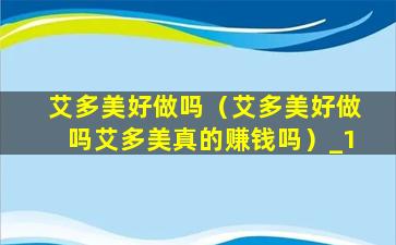 艾多美好做吗(艾多美好做吗艾多美真的赚钱吗)