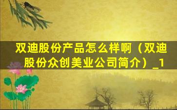双迪股份产品怎么样啊(双迪股份众创美业公司简介)