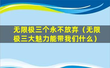 无限极三个永不放弃(无限极三大魅力能带我们什么)