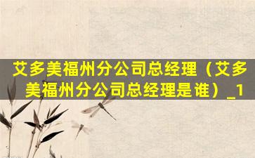艾多美福州分公司总经理(艾多美福州分公司总经理是谁)