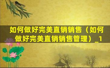如何做好完美直销销售(如何做好完美直销销售管理)
