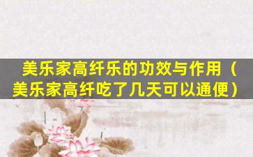 美乐家高纤乐的功效与作用(美乐家高纤吃了几天可以通便)