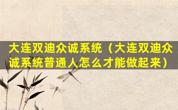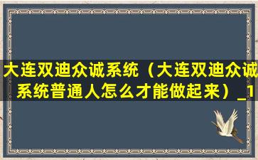 大连双迪众诚系统(大连双迪众诚系统普通人怎么才能做起来)
