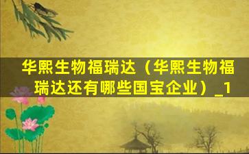 华熙生物福瑞达(华熙生物福瑞达还有哪些国宝企业)