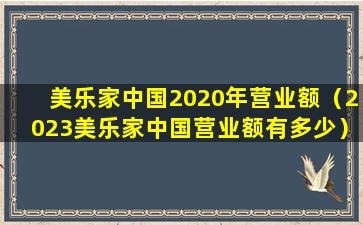 美乐家中国2020年营业额(2023美乐家中国营业额有多少)