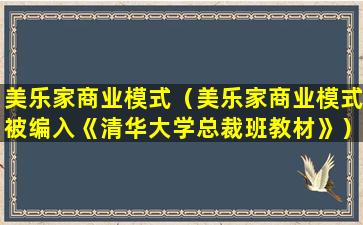 美乐家商业模式(美乐家商业模式被编入《清华大学总裁班教材》)