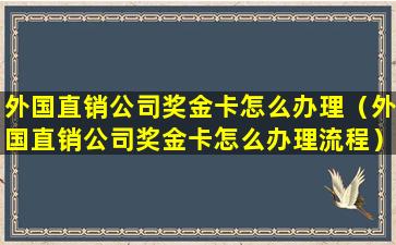外国直销公司奖金卡怎么办理(外国直销公司奖金卡怎么办理流程)