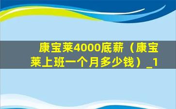 康宝莱4000底薪(康宝莱上班一个月多少钱)