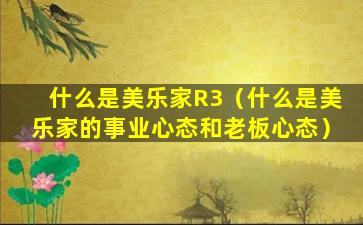 什么是美乐家R3(什么是美乐家的事业心态和老板心态)