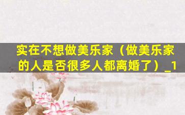 实在不想做美乐家(做美乐家的人是否很多人都离婚了)