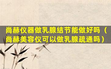 尚赫仪器做乳腺结节能做好吗(尚赫美容仪可以做乳腺疏通吗)