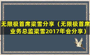 无限极首席梁雪分享(无限极首席业务总监梁雪2017年会分享)