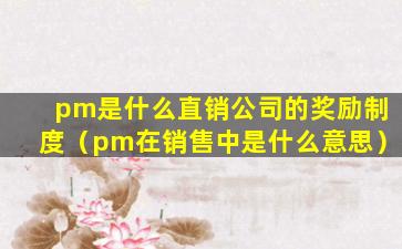 pm是什么直销公司的奖励制度(pm在销售中是什么意思)