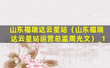 山东福瑞达云星站(山东福瑞达云星站运营总监周光文)