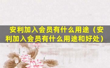 安利加入会员有什么用途(安利加入会员有什么用途和好处)