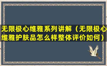 无限极心维雅系列讲解(无限极心维雅护肤品怎么样整体评价如何)