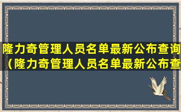 隆力奇管理层名单已在官网最新公布,可供查询。