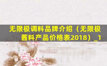 无限极调料品牌介绍(无限极酱料产品价格表2018)