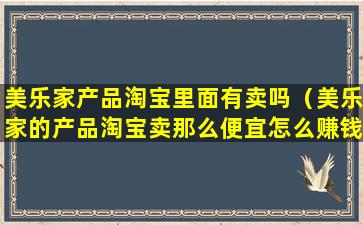 美乐家产品淘宝里面有卖吗(美乐家的产品淘宝卖那么便宜怎么赚钱)